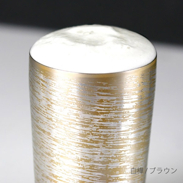 ロングセラー商品。純チタン製二重構造、保冷保温タンブラー。口部は唇に軽やかにフィットする薄さ仕上げられています。内側に施された特殊加工がビールのきめ細かな泡をつくり風味を閉じ込めます。もちろんビール以外の飲み物、温かい飲み物にも心地よくお使いいただけます。表面の白樺模様のエッチング加工により、滑りにくく持ちやすくなっています。