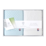化粧箱サイズ:20×30×4cm、フェイスタオル×2(ドットブルー、リーフホワイト)約33×78cm