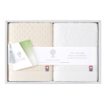 化粧箱サイズ:20×30×4cm、フェイスタオル×2(ドットベージュ、リーフホワイト)約33×78cm