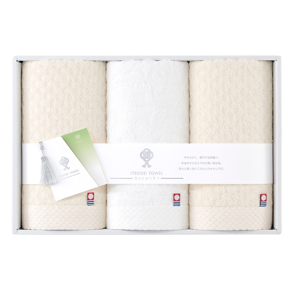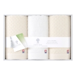 化粧箱サイズ:24×36×5cm、フェイスタオル×3(ドットベージュ×2、リーフホワイト×1)約33×78cm