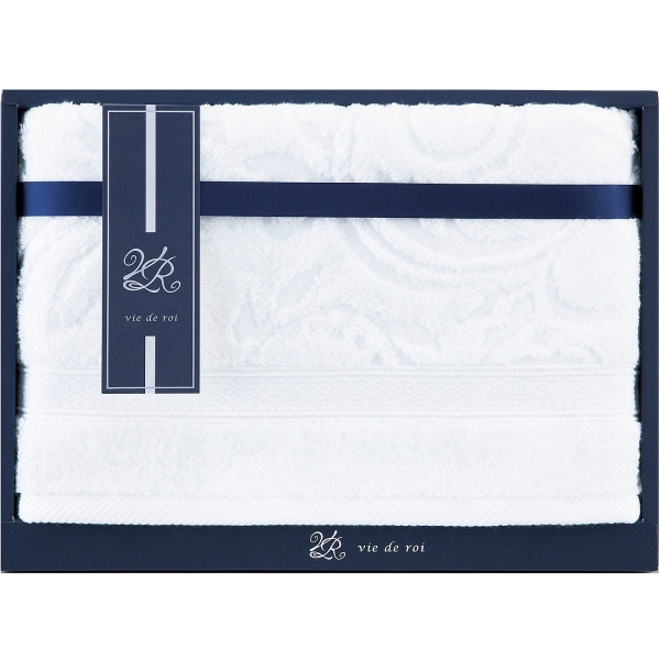しなやかで、なめらかな肌ざわりのピマコットンを使った今治タオル。ジャガード織の気品あるデザインです。