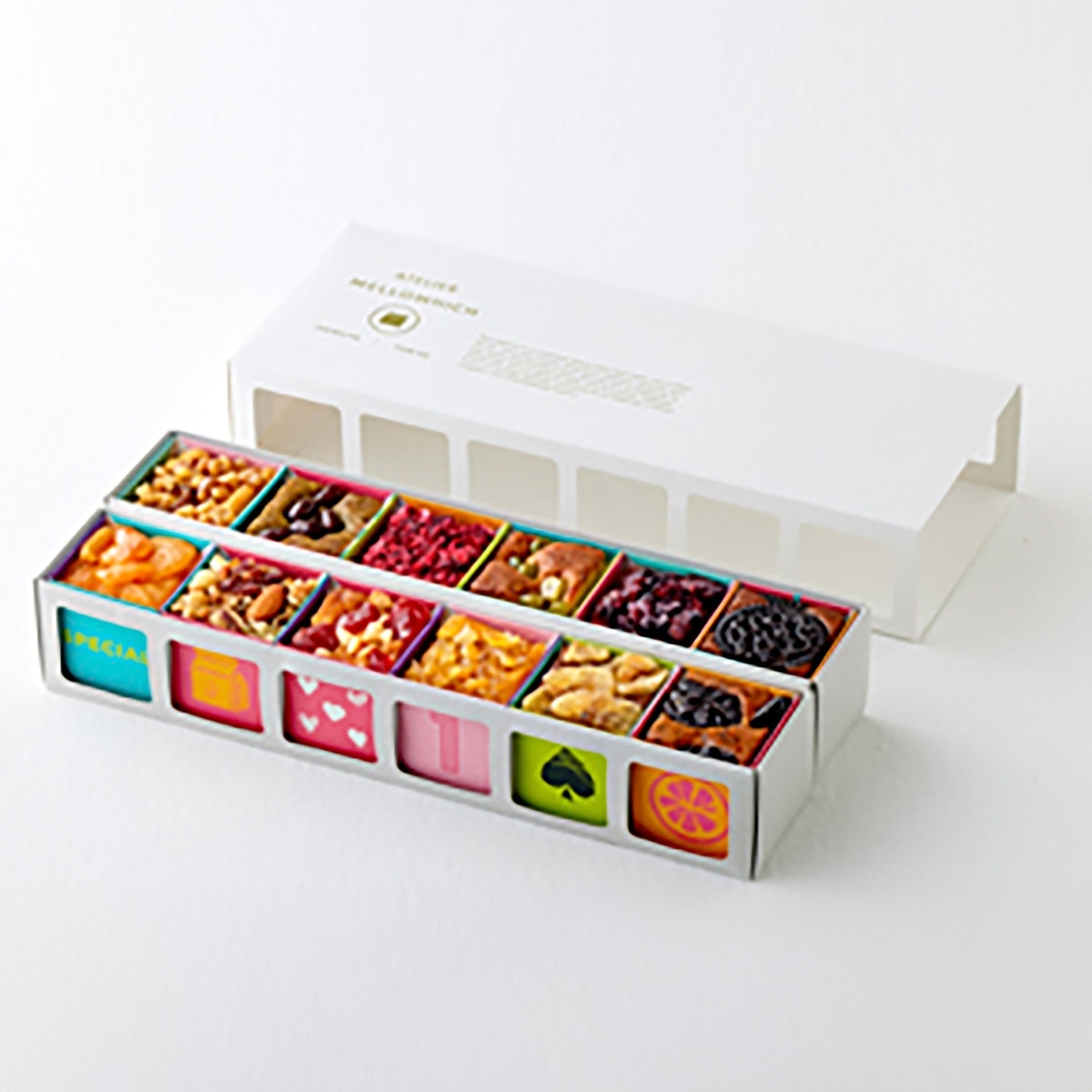 まるで宝石のような可愛らしい見た目は、開けた瞬間からときめきをもたらします。フルーツやナッツをふんだんに使用し、口に入れた瞬間からしっとり生感な味わいを楽しめます。母の日限定のかけ紙をお付けしてお届けいたします。