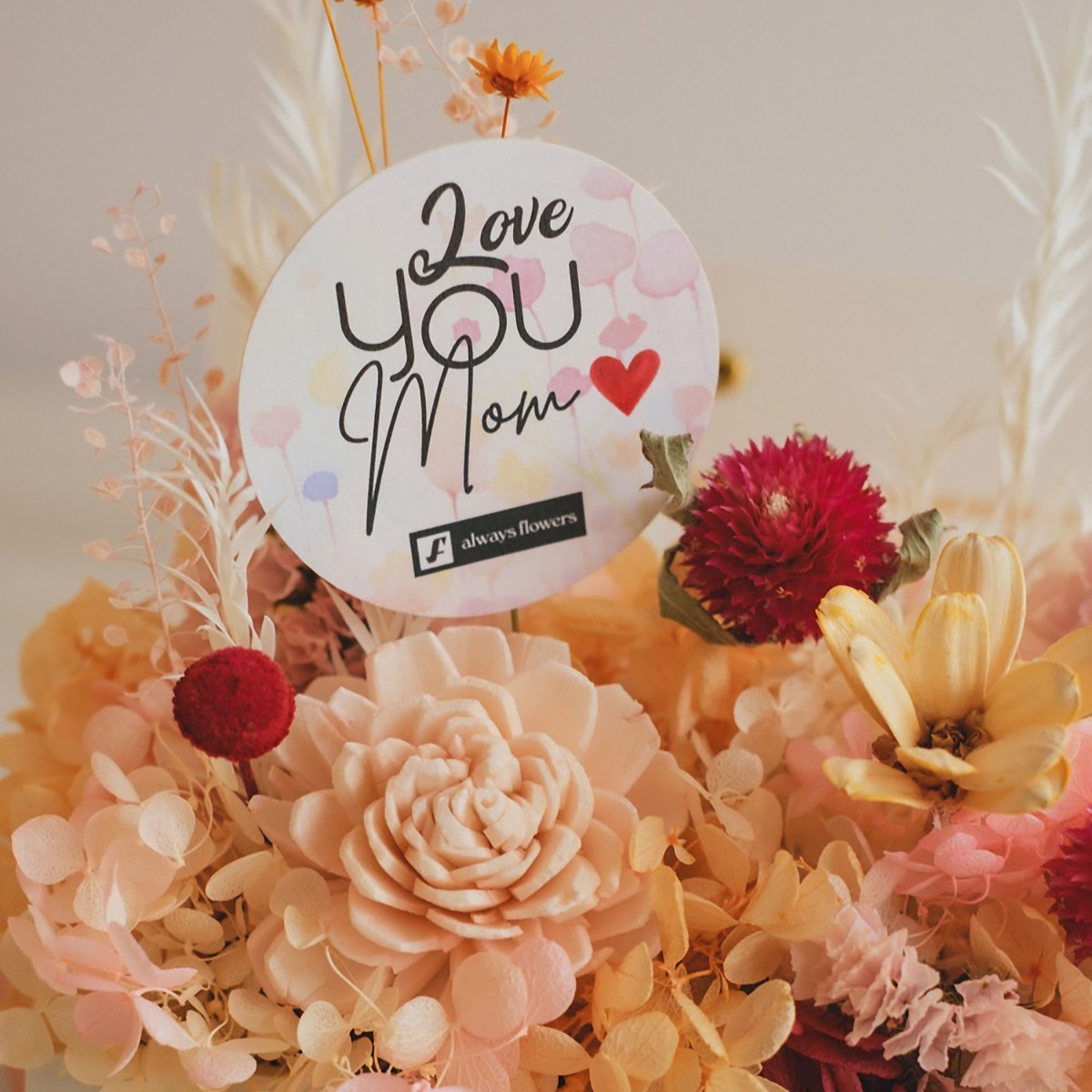 フラワーバッグアレンジ 母の日限定ドライ&プリザーブドフラワー ラブオレンジ S
