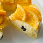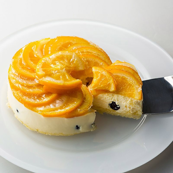 北海道産のクリームチーズを使用した濃厚なレアチーズに、オレンジやレモンのシロップ漬けを華やかに飾りました。濃厚なレアチーズと爽やかな柑橘は相性ぴったりです。飽きることなくお楽しみいただけます。食感のアクセントとしてレアチーズの中にブルーベリーが入っています。