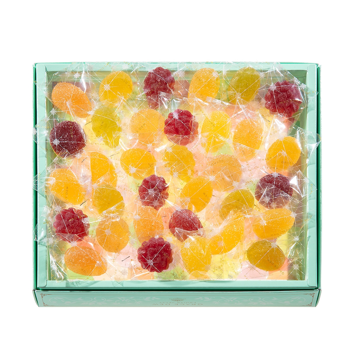 彩り美しく、果実の豊潤な味わいを包み込んだ多彩で愛らしい恵みのしずく『グレースデュー』をご用意いたしております。その多彩なおいしさに加え、うれしいコラーゲン・食物繊維が入り。16種類の小さく愛らしいゼリーが心華やぐひと時をお届けします。