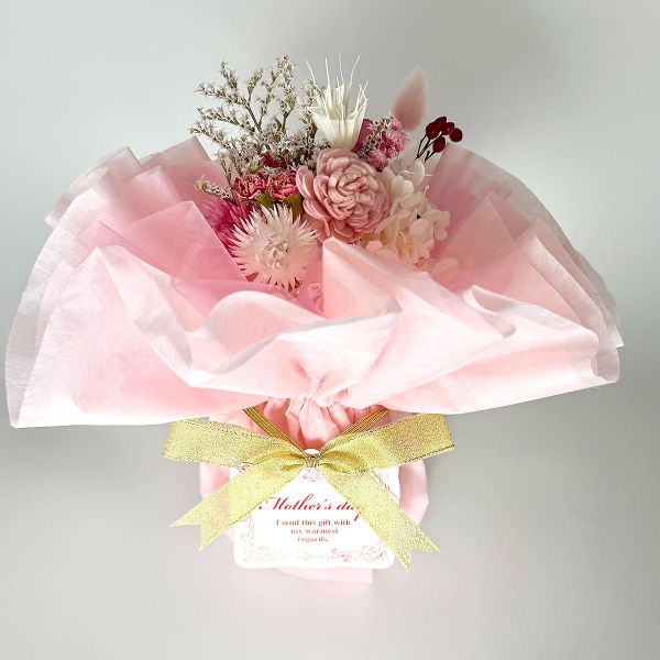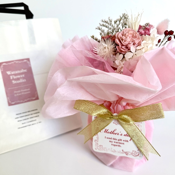 母の日のフラワーブーケギフトをそのまま置いて飾れる、水やりいらずのお花のインテリア Sサイズ