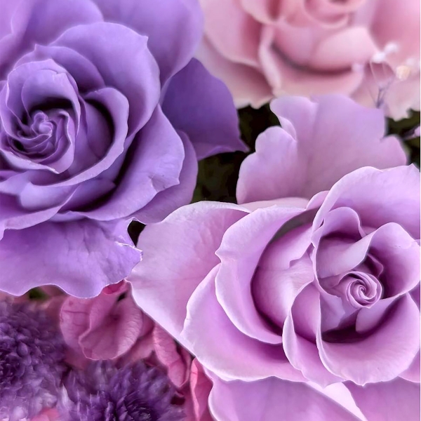 陶器のスクエア型花器に、高貴な印象を与えるラベンダーカラーのローズを主役に構成しました。甘すぎない美しさを追及し、気品漂う大人のパープルアレンジメントに仕上げました。陶器の花器にはピンクのリボンを添えて、『母の日の優しさ』も添えています。Bell Roseでは、日々の感謝の気持ちをお伝え出来ますよう一点一点手作業にて丁寧に制作させていただいております。