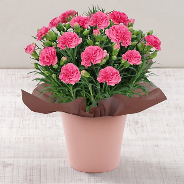 カーネーション(ピンク)と銀座フレンチ名店監修の芳醇な香りが口の中いっぱいに広がる山形県産白桃のゼリーのセット