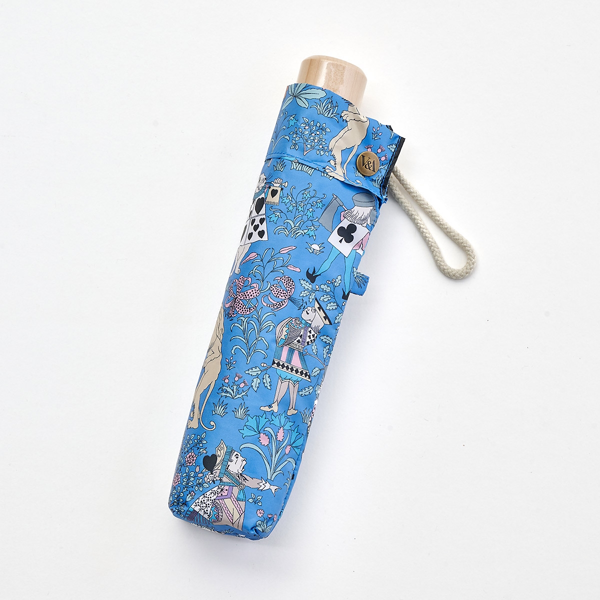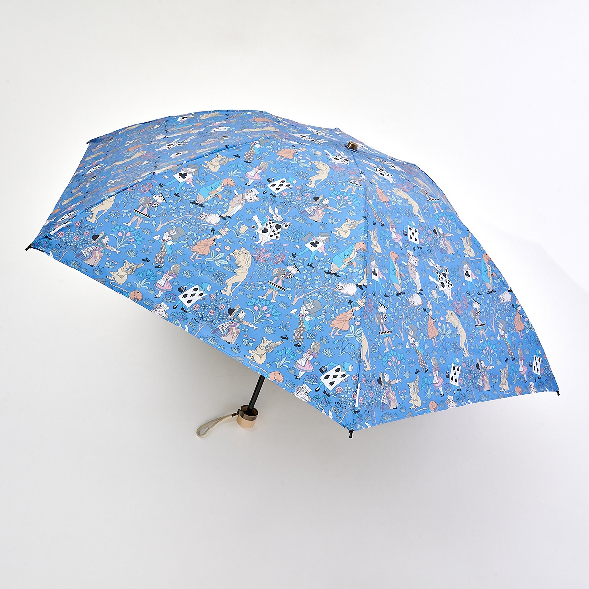 アリス柄・晴雨兼用折傘ミニ ブルー