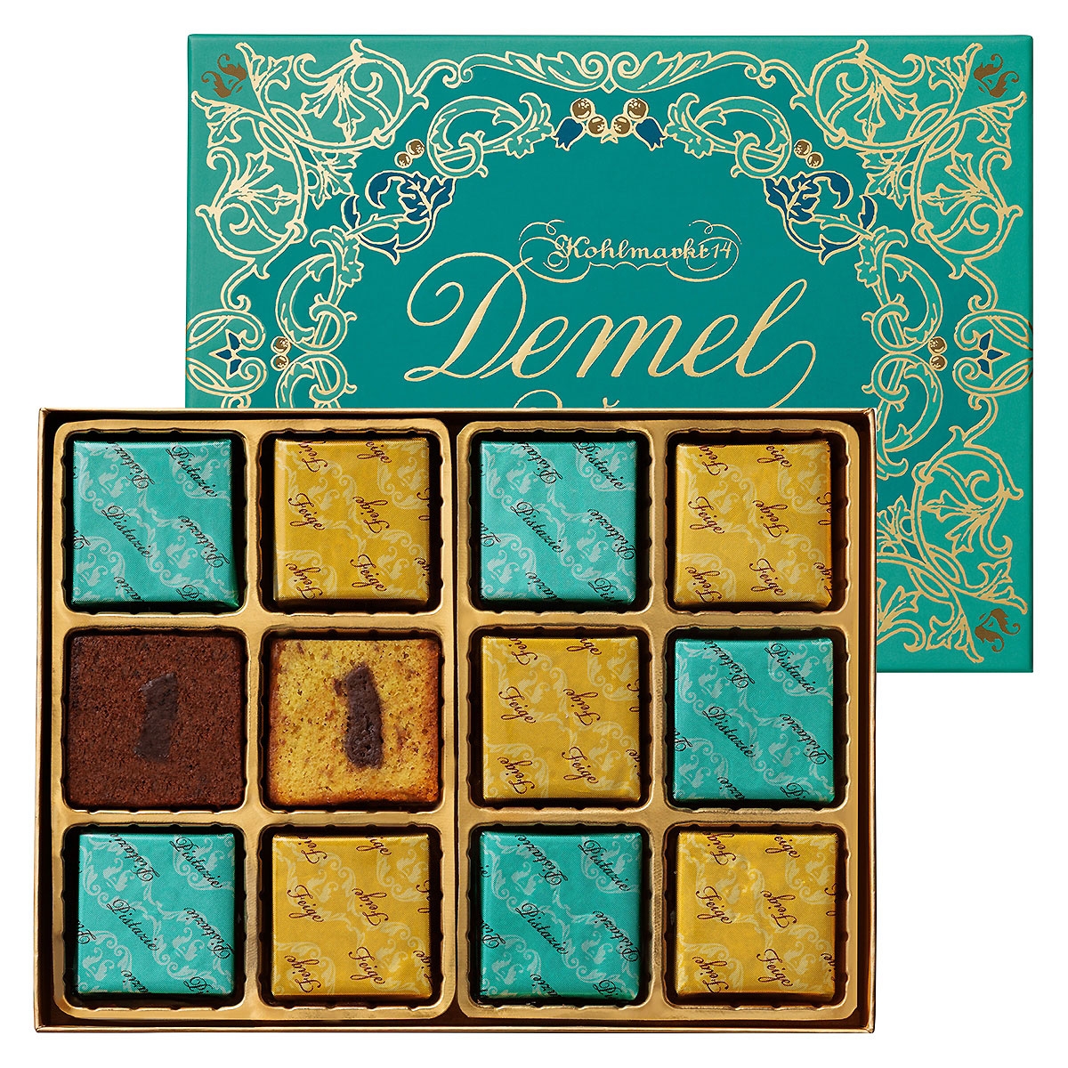 ココア風味のしっとりとした生地に、イチジクを加えたスウィートチョコの味が楽しめる「フィグ」、ピスタチオ風味の香ばしい生地に、爽やかなサワーチェリーを加えたミルクチョコの味が楽しめる「ピスタチオ」、2種類のケーキを詰め合わせました。