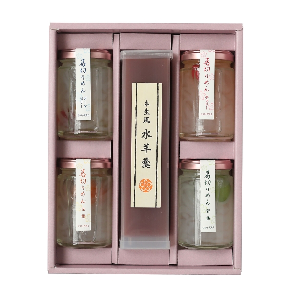 水羊羹300g×1/葛切りめん(若桃、チェリー、金柑、フルーツボールゼリー) 各140g×1(瓶入り)