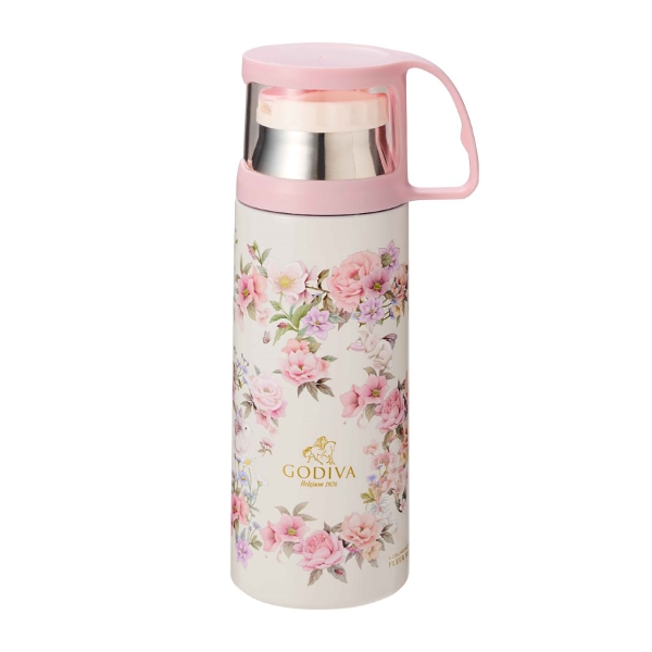 ありがとうの気持ちを伝えるギフトセット。春らしい色とりどりの花を表現したフラワー形のパッケージの心躍るチョコレートの詰め合わせと、オリジナルデザインのステンレスボトルをセットにしました。母の日の贈り物にもおすすめです。