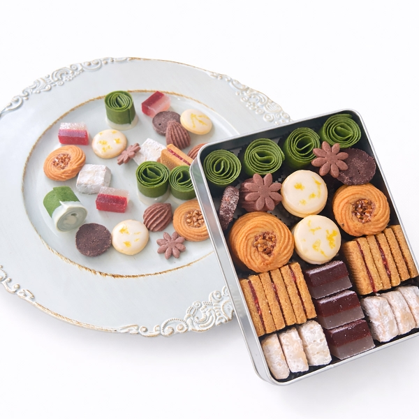 8種類の焼き菓子と1種類の砂糖菓子。色々な種類をたくさん詰め込んだ、ボリュームあるクッキー缶です。