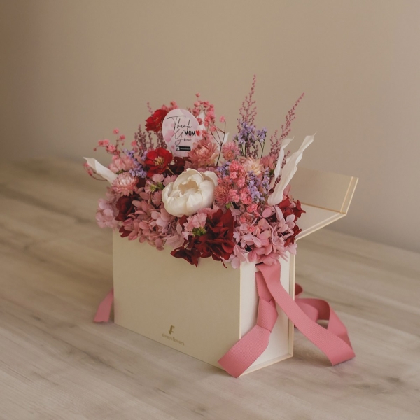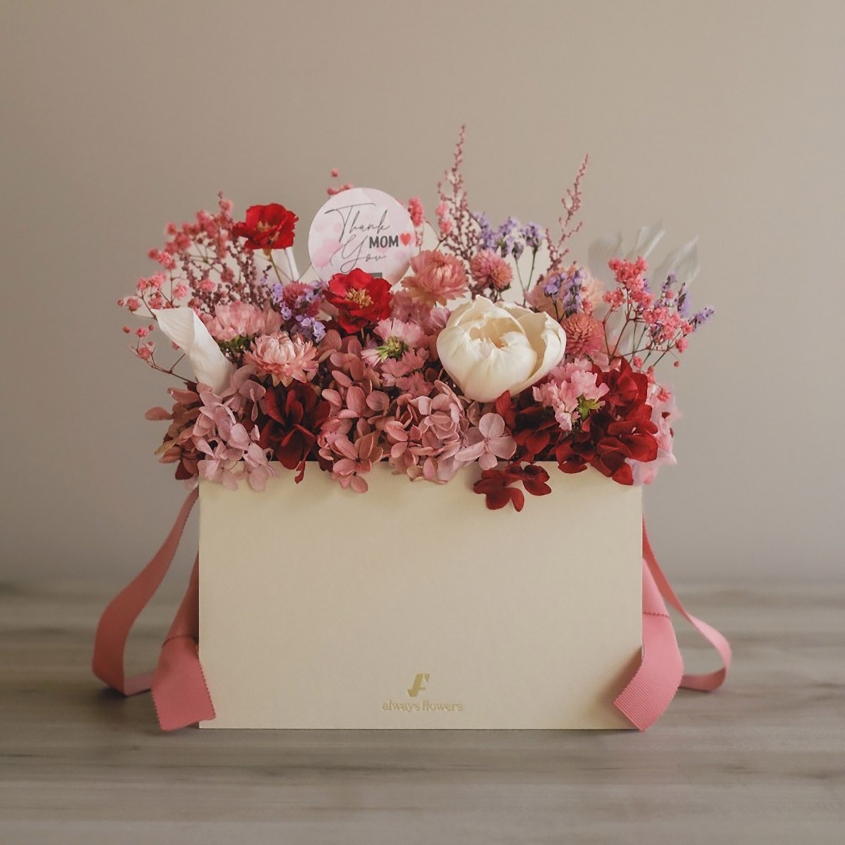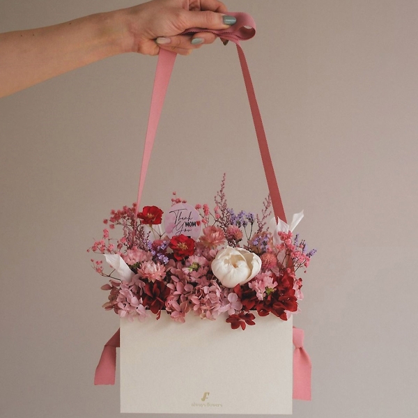 フラワーバッグアレンジ 母の日限定ドライ&プリザーブドフラワー ハートフルピンク M