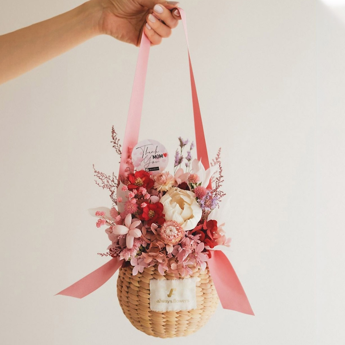 カゴバッグアレンジ 母の日限定ドライ&プリザーブドフラワー メルティーピンク M