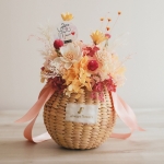 [カゴ]ウォーターヒヤシンス、[リボン]ポリエステル、[花材]ドライフラワー・プリザーブドフラワー