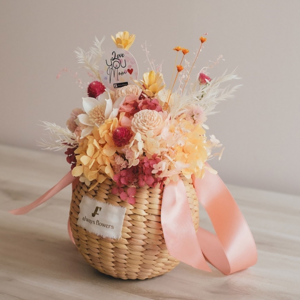 カゴバッグアレンジ 母の日限定ドライ&プリザーブドフラワー サンオレンジ M