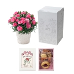 グラデーションが美しいカーネーションと甘酸っぱく可愛らしい5種の焼菓子アソート。