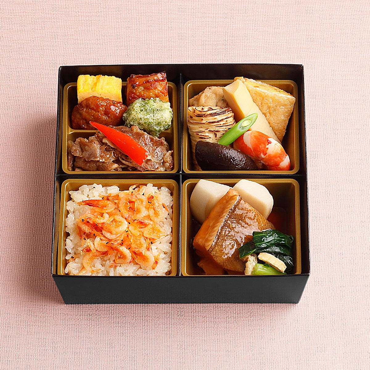 母の日の贈り物に料亭ならではの美味しさにこだわった少し贅沢な「冷凍弁当」をご用意いたしました。女性にご好評の「鰈の煮付け」をメインに、牛香味焼や鶏味噌焼といった肉料理から、海老芝煮、巻湯葉、筍含め煮などの出汁をきかせた煮物、香ばしい桜海老の御飯まで詰め合わせた、少し贅沢なお弁当に仕上げました。冷凍からそのまま電子レンジで温めるだけで食べられる簡単仕様なので、ご都合に合わせてお好きな時にお召しあがりいただける一品です。