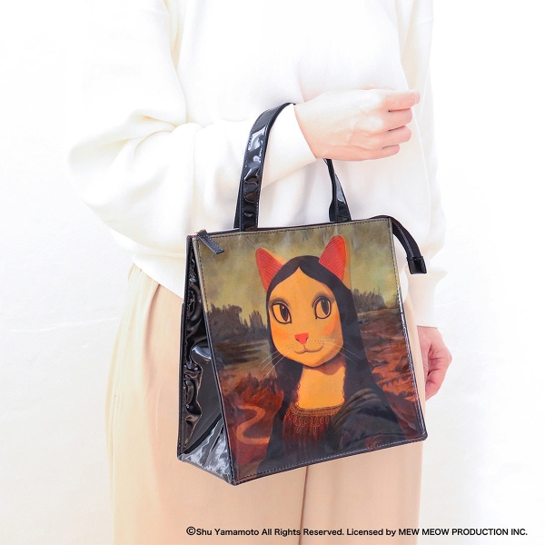 ランチトートバッグ モニャ・リザ/レオナルド・ニャビンチ(ブラック)