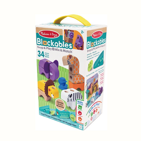 木とフェルトを使った新しいブロックです。ジョイントを使って好きなようにパーツ同士を組み合わせましょう!シマウマ、ワニ、ライオン、ゾウ、キリンなどの楽しいサファリ動物を作って遊んだり、組み合わせて自分だけの面白いキャラクターや作品を作ることができます。パッケージは折りたたんでプレイ スペースとしても使用できます。ピースは持ち手付きのボックスに収納でき、簡単に片付けて持ち運びができます。