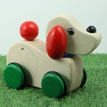 カラフルなパーツと白木のぬくもり感のコンビネーションがかわいいオルゴールです。ほどよく丸みがかったフォルムがお子様の手によく馴染み、前後に動かすとワンちゃんが首を振りながら内臓のオルゴールが「となりのトトロ」を奏でます。小さなお子さまが投げつけたりできないように程よい重量感を持たせてあります。