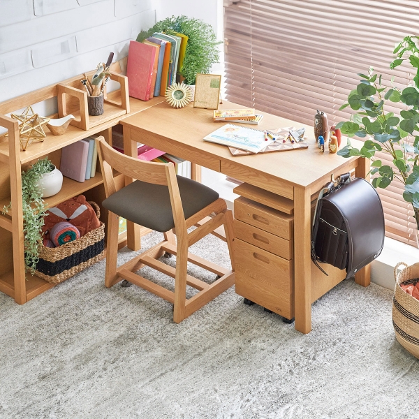 コンパクトなので、リビングなどに置いても場所を取らず、お子様用だけでなく、パソコンデスクとしてもご利用いただけます。天板はキズ、汚れに強いUV塗装で仕上げておりますので安心してご使用いただけます。