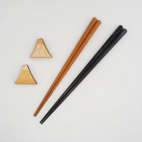 [箸]素材/天然木、塗装/持ち手/ウレタン塗装、箸先/漆塗装 [箸置き]素材/天然木、塗装/みつろう仕上げ