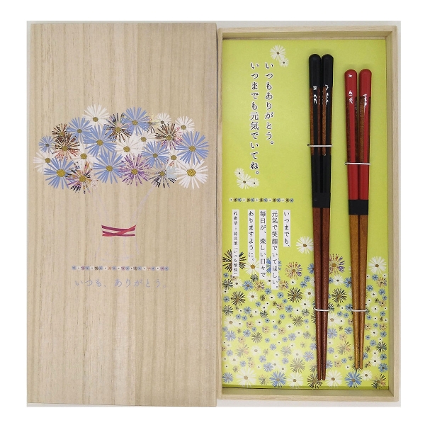 “いつもありがとう”“いつまでも元気でいてね”をコンセプトに、大切な人へ感謝を贈るギフトセットです。みなさまの毎日が楽しい日々を送れますように願いを込めて桐箱のデザインを花束で。お箸は食器洗浄機にも使用できます。