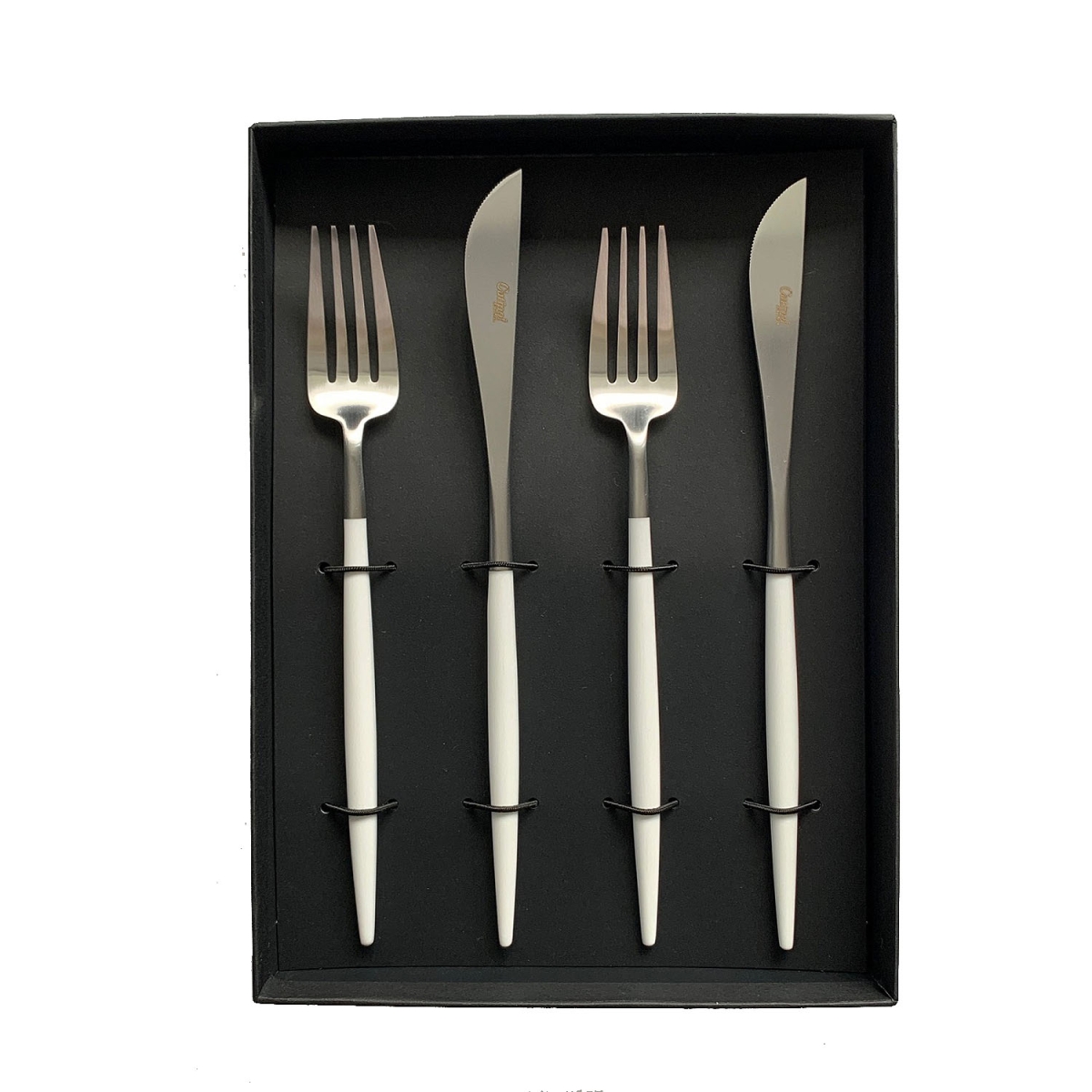 ≪クチポール (Cutipol)≫GOAテーブルフォーク&テーブルナイフセット(ホワイト×シルバー)