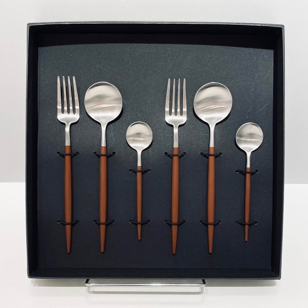 ≪クチポール (Cutipol)≫GOAデザート&ティースプーン6本セット(ブラウンシルバー) (シルバー)