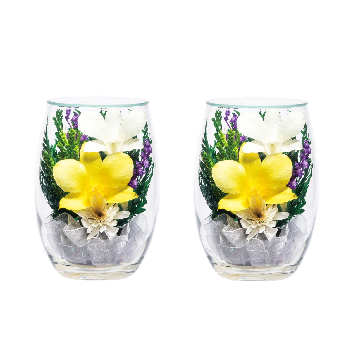 人気のプリザーブドフラワーをガラスの中に閉じ込めました。植物の一番美しい頃に収穫し、すぐに水分を抜き、カラーリングのための色素液などをまぜた薬剤(人体に無害)に浸すため、生花の風合いが残ります。又、ガラスケースに収まっている為ホコリが直接お花に被らず、長く綺麗な姿を楽しめます。お手入れ簡単(水、光不要)、お花の取替えの必要がないため、場所を選ばずにお飾り頂くことができます。