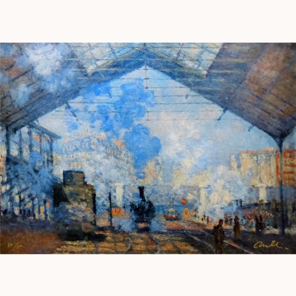 サン=ラザール駅は、クロード・モネが1877年にパリのサン=ラザール駅とその周辺をテーマに描いた一連の作品で、本作はノルマンディー線のプラットホームが描かれております。