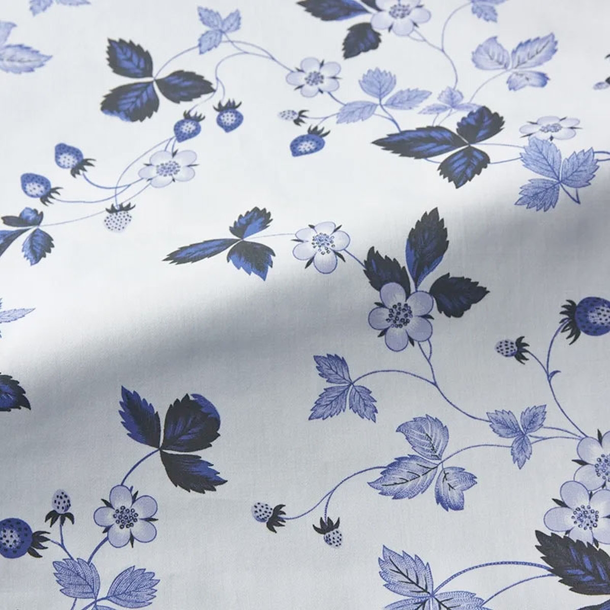 【Strawberry Inky Blue(ストロベリー インクブルー)】ワイルド ストロベリーを鮮やかな濃淡で表現した新作です。陶器の美しい発色とパターンをオールオーバープリントで再現しました。