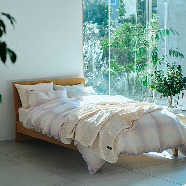 【日本製 麻100%の掛けふとんカバー】麻100%(ヨーロッパリネン100%)の先染めの掛け布団カバーです。空のグラデーションをイメージしたチェックが寝室を彩ります。【6か所クイックスナップ 4か所ひも付き】着脱しやすいクイックスナップ6か所とひも4か所でふとんをズレにくくします。片側全開ファスナーで取手2コ付きです。植物資源から造られるバイオマスビニール使用し環境に配慮しています。【洗濯機で洗える(洗濯ネット使用)】汚れてもすぐに洗えて、清潔にご使用いただけます。