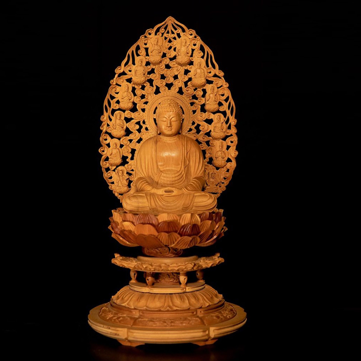 白檀 最上彫八角台座十三仏光背座釈迦30(禅宗)