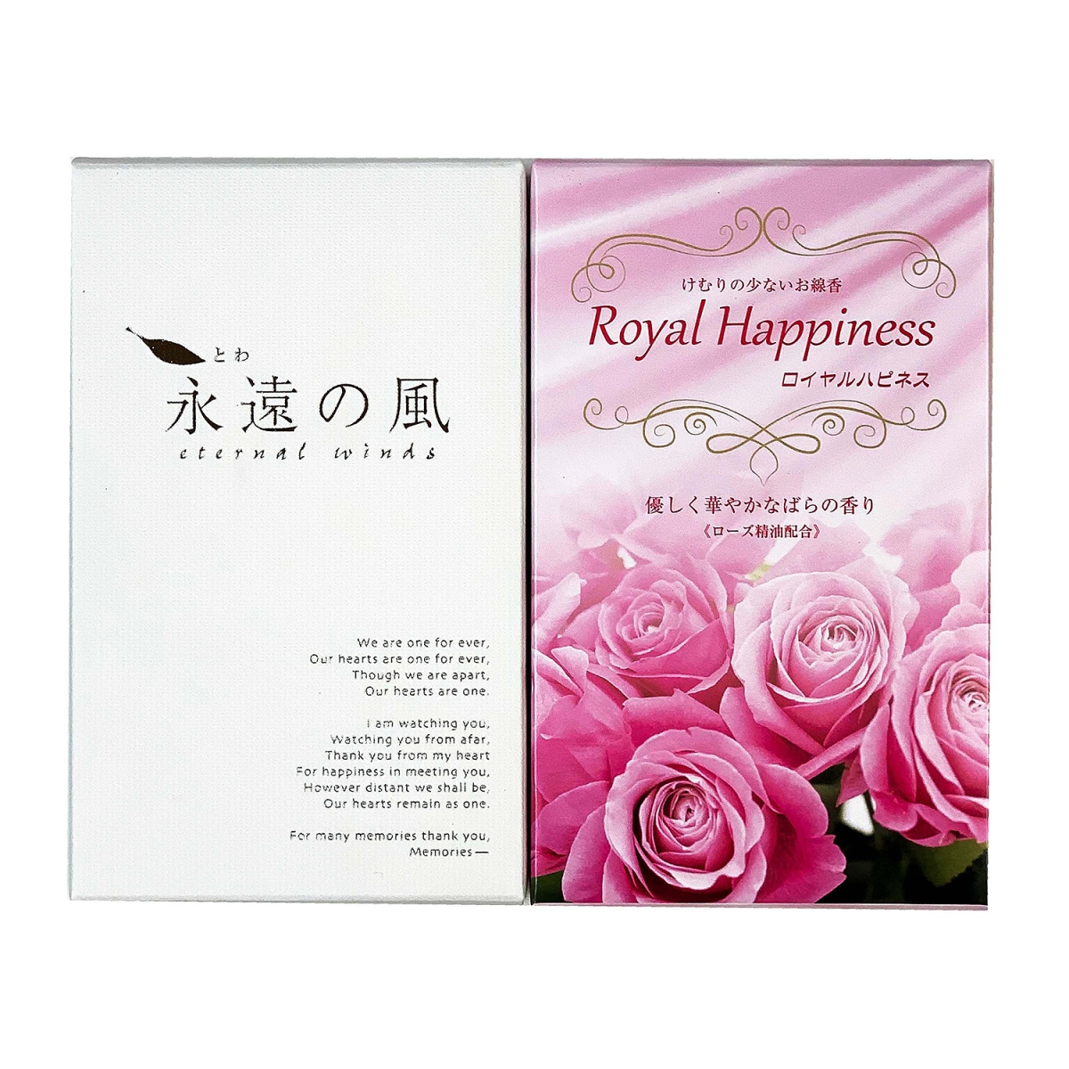 【微煙】やわらかく上品なフローラル調の香り「永遠の風」と優しく華やかなバラの香り「ロイヤルハピネス」をセットに贈答用に致しました。