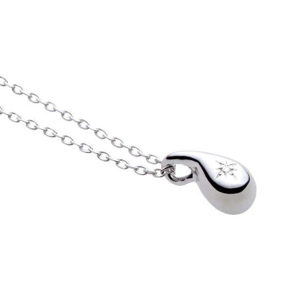 ◇プチペンダントシリーズ プチシリーズのドロップ 雫型のペンダント。ワンポイントに、0.01カラットのダイヤモンドがあしらわれています。