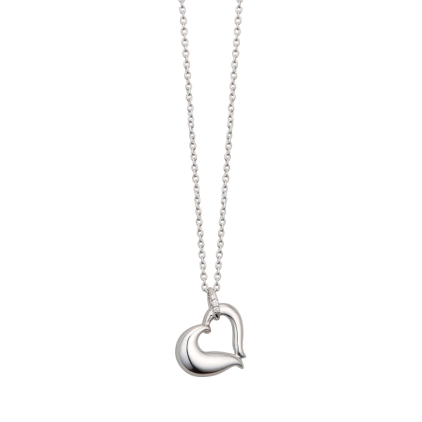◇オープンハート&クレッセント ハート型が揺れるペンダント。チェーンと本体をつなぐリング部分には、ダイヤモンドとキュービックジルコニアが埋め込まれ輝きを放ちます。