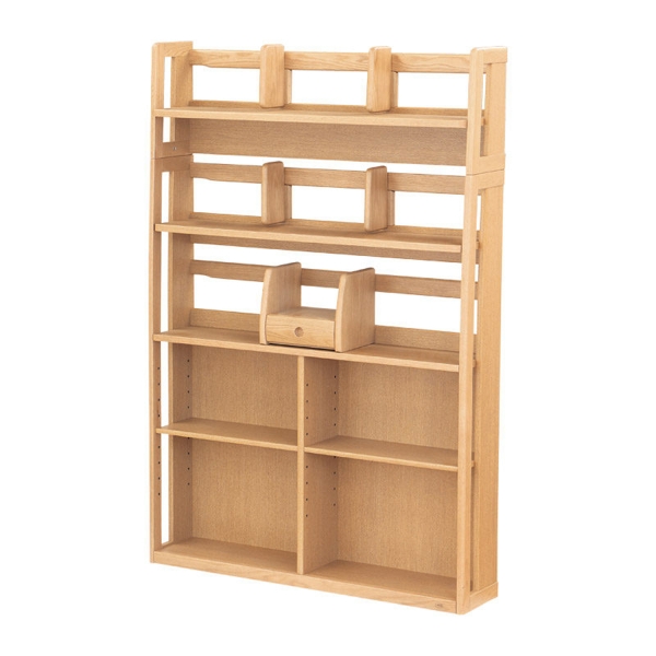 収納量は抜群で棚仕切板を4枚、No.28ブックエンドを1個標準装備しています。また上箱、下箱と分離して使用できるため、ご使用範囲も広がります。