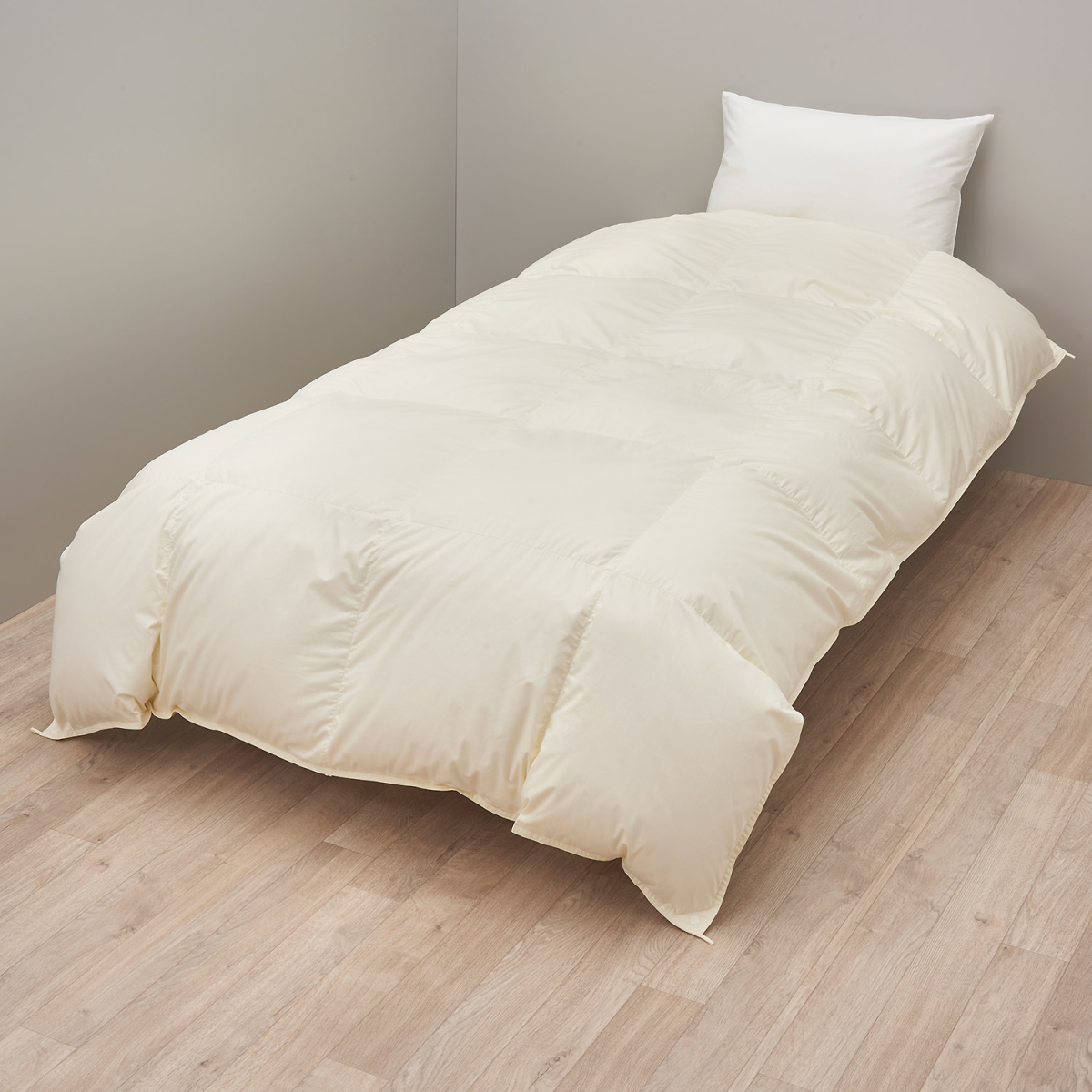 ふとんがわ:綿100%(60ラムコサテン)、詰めもの:ポーランド産ホワイトグースダウン90%・フェザー10% 0.7kg