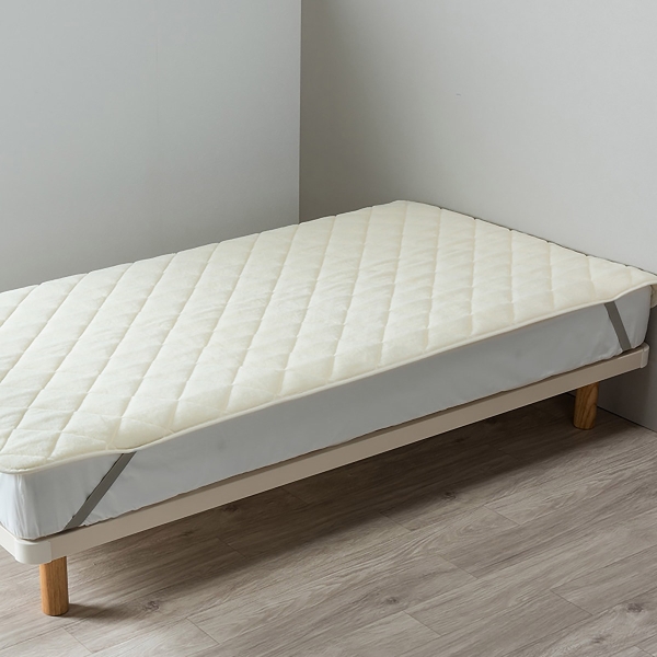 【あったかウール敷きパッド】ふんわりとしたやさしい肌ざわりのウール100%(表生地)の敷きパッドです。秋冬にぴったりのあたたかさ。【四隅に強化ゴムを使用】四隅にゴムがついており、敷きふとんやベッドマットレスに固定できます。寝返りしてもずれにくく、繰り返しのお洗濯でもゴムが伸びにくい強化ゴム(NDXゴム)を使用しています。【洗濯機で洗える(ネット使用)】汚れてもすぐに洗えて、清潔に使えて便利です。