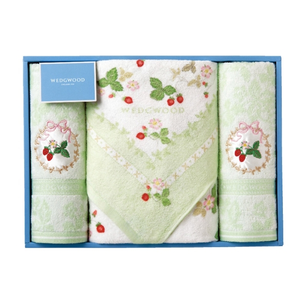 ウェッジウッド バスタオル1枚 フェイスタオル2枚セット ギフトボックス入り TT88500601G1(グリーン)