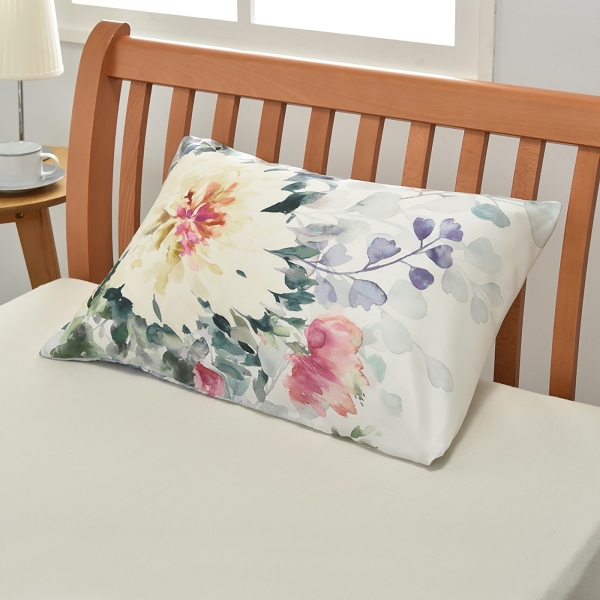 大胆なレイアウトと目を引くカラーリングで描かれたお花のブーケのデザイン。【再生繊維(リヨセル)を使用】とてもソフトな風合いで、綿に比べ優れた吸放湿性があり、快適な使い心地。耐久性と光沢感を兼ね備えたリヨセルは、計画植林されている成長の早いユーカリのパルプを原料としているので、環境負荷を軽減し、地球にやさしい素材です。【まくらの出し入れが簡単・便利】袋の口の部分を折り込んで使用する封筒式なので、付け替えも簡単・便利です。【洗濯機で洗える】汚れてもすぐに洗えて、清潔に使えて便利です。
