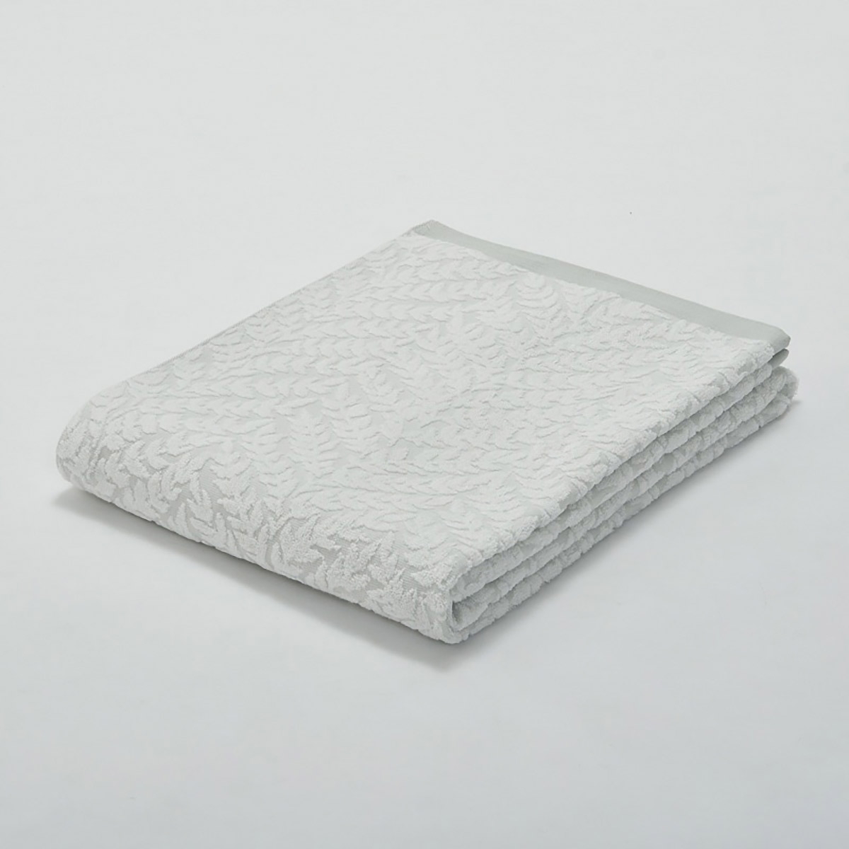 ジャカード織で仕立てたヘリンボーン調パターンのシンプルなタオルケット。今治タオルブランドネーム付きです。