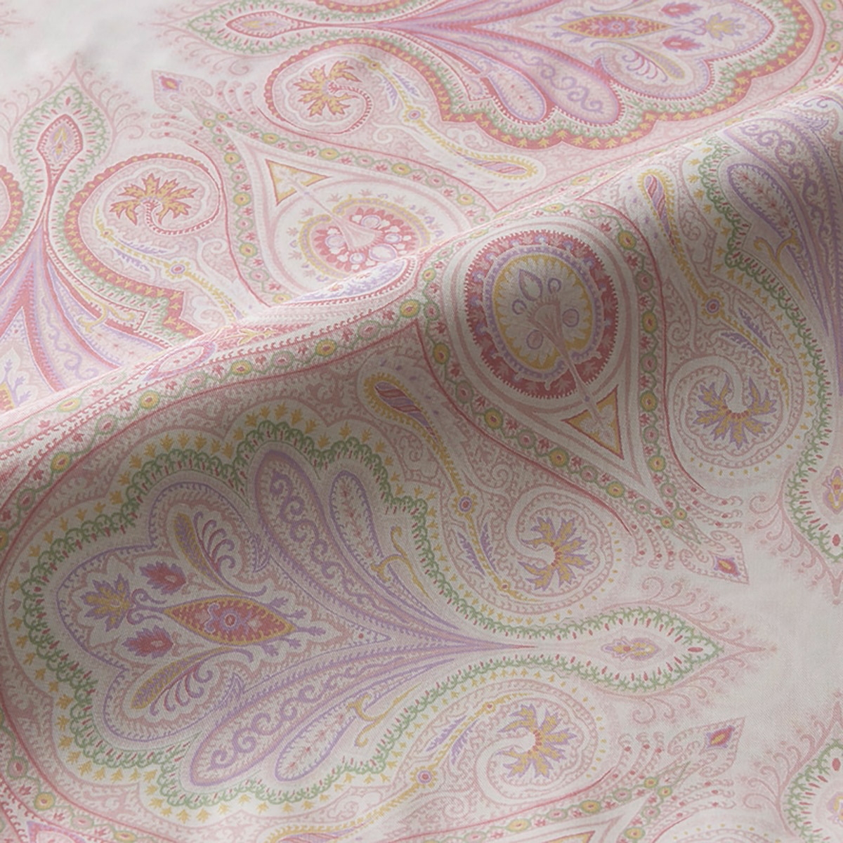 【再生繊維(リヨセル)を使用 日本製の掛けふとんカバー】とてもソフトな風合いで、綿に比べ優れた吸放湿性があり、快適な使い心地。耐久性と光沢感を兼ね備えたリヨセルは、計画植林されている成長の早いユーカリのパルプを原料としているので、環境負荷を軽減し、地球にやさしい素材です。伝統的なペズリーを軽やかでモダンなカラーにアレンジしました。ピンクは華やかなリゾート感をイメージ。グレーはシックでかっこいい雰囲気。配色によって違ったイメージを演出できます。【10か所ホック付きエステルテープ付き、両サイドファスナースライダー2コ付き 簡単・便利な掛けふとんカバー】ふとんカバーの両サイドにファスナーが付いているので、出し入れが簡単。また、おふとんとカバーを結ぶテープにはホックが付いているので付け替えも便利で、ふとんがズレにくいです。【洗濯機で洗える(ネット使用)】汚れてもすぐに洗えて、清潔に使えて便利です。