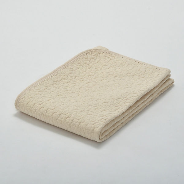 天然素材綿100%です。水洗い加工を施し、やわらかい肌ざわりに仕上げました。四隅にゴムが付いているのでセットが簡単にでき、敷きふとんやベッドマットレスにお使いいただけます。ご家庭で丸洗いできます。