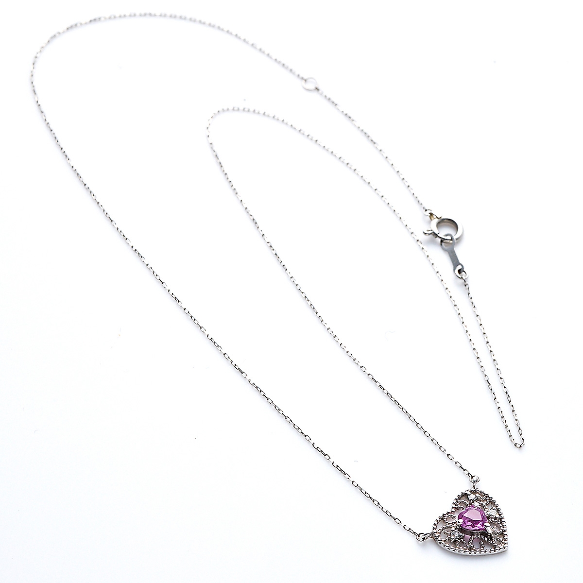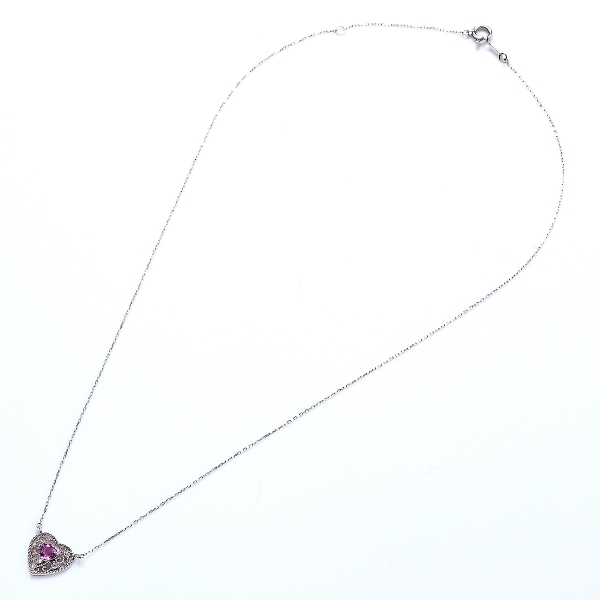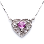 ハート型のプラチナ台に、ハートシェイプピンクサファイヤとダイヤモンドをセッティングしたペンダント