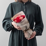 バラブーケとスイーツのコンビギフトです。艶やかなベルベットのような深紅のバラ・サムライと、シックな花色の変化が美しい「テナチュール」を組み合わせたフリルブーケ。華やかさとアンティークな雰囲気を合わせ持つ豊かな表情が魅力です。まるでドレスをまとったようなふわりと重ねたフリルがかわいいラッピングでお届けします。