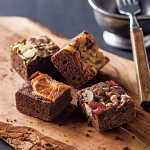 ブーケと一緒に、瀬戸内のフルーツ工房・ホシフルーツのナッツとドライフルーツの贅沢ブラウニーと組み合わせました。甘すぎず大人にもおすすめのちょっと贅沢なブラウニーです。大切な方の記念日に、想いを伝えたい時におすすめです。